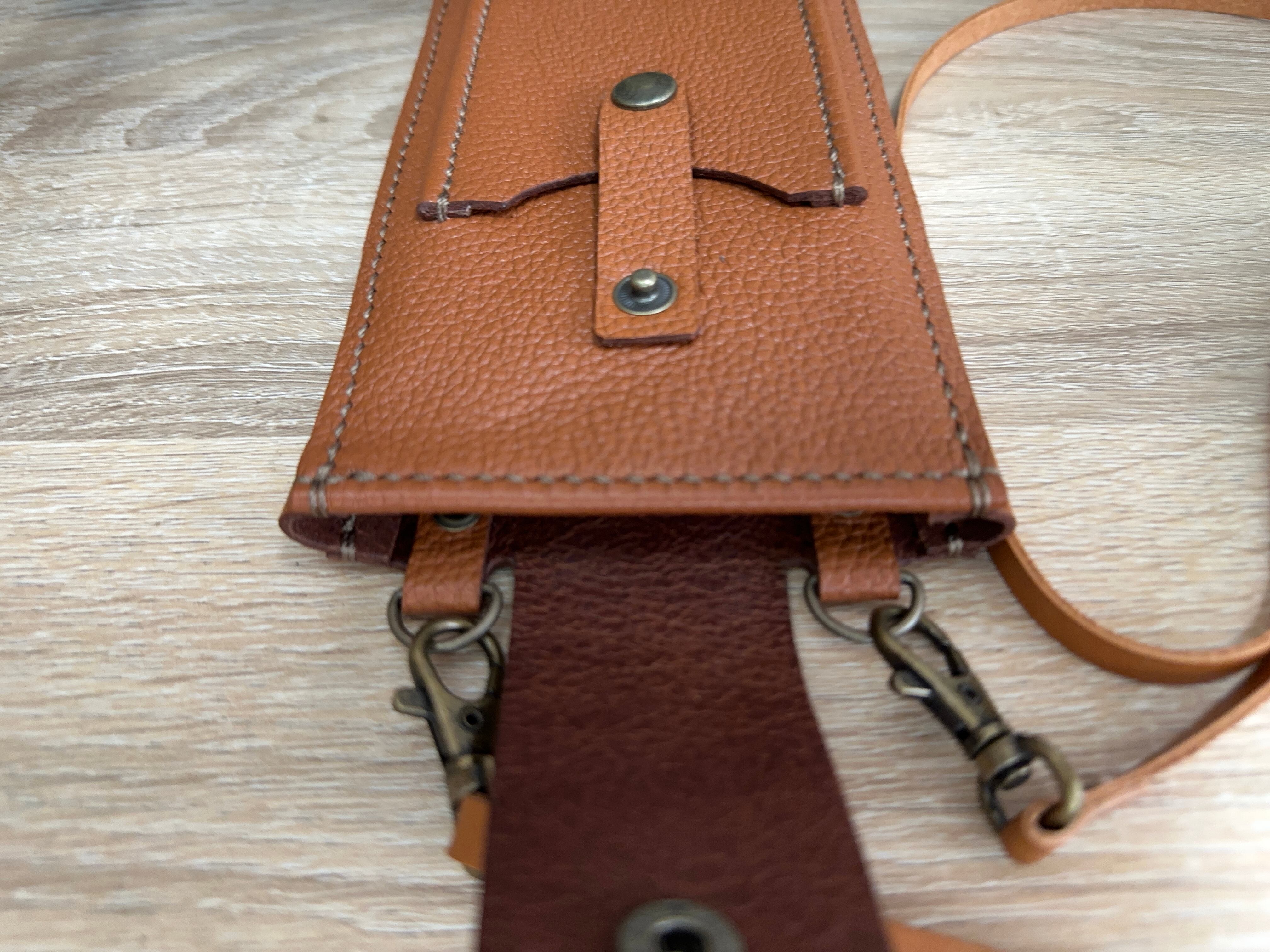 本革を使用したスマホポーチ、ショルダーバックになっています。