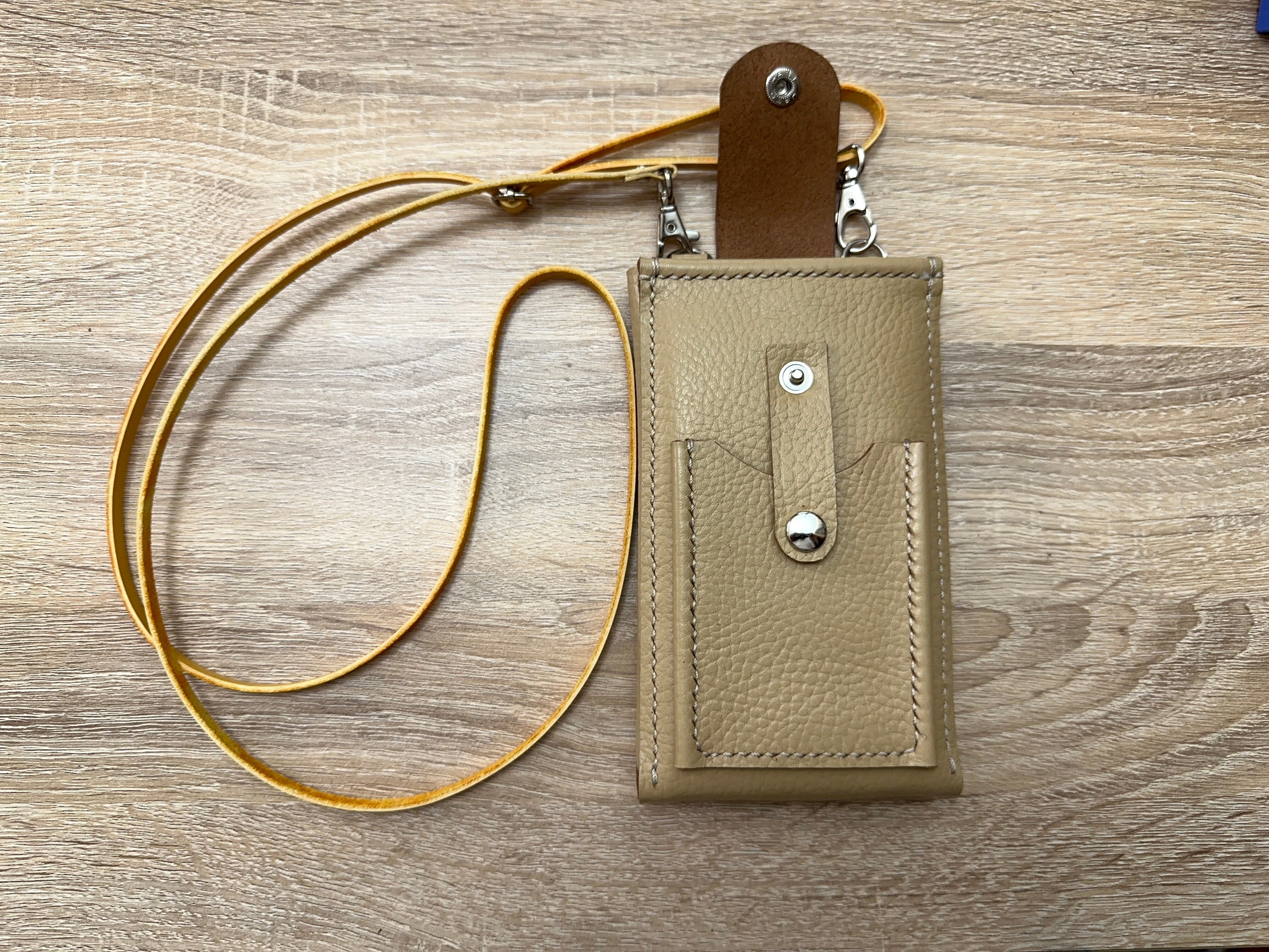 本革を使用したスマホポーチ、ショルダーバックになっています。
