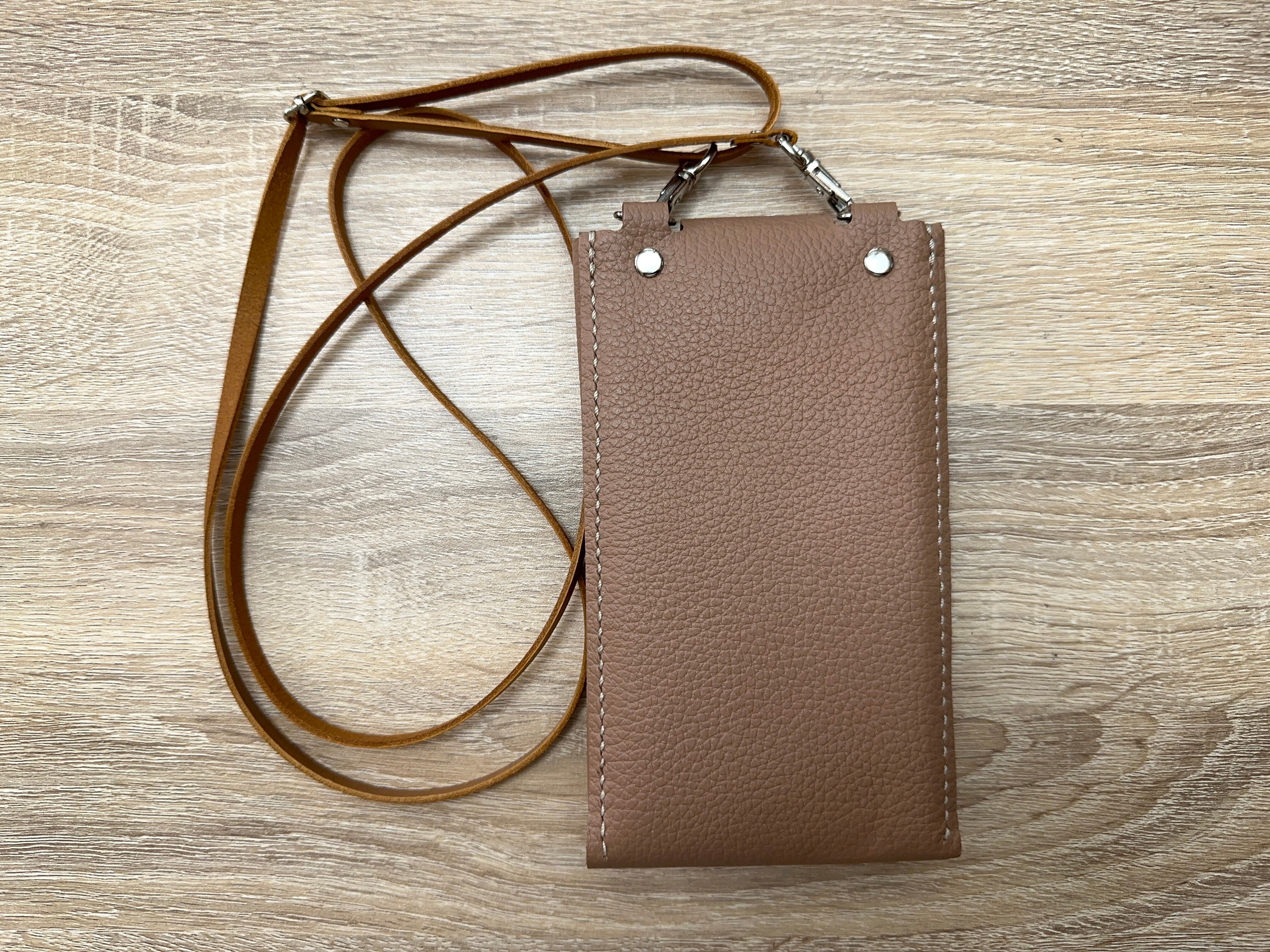 本革を使用したスマホポーチ、ショルダーバックになっています。