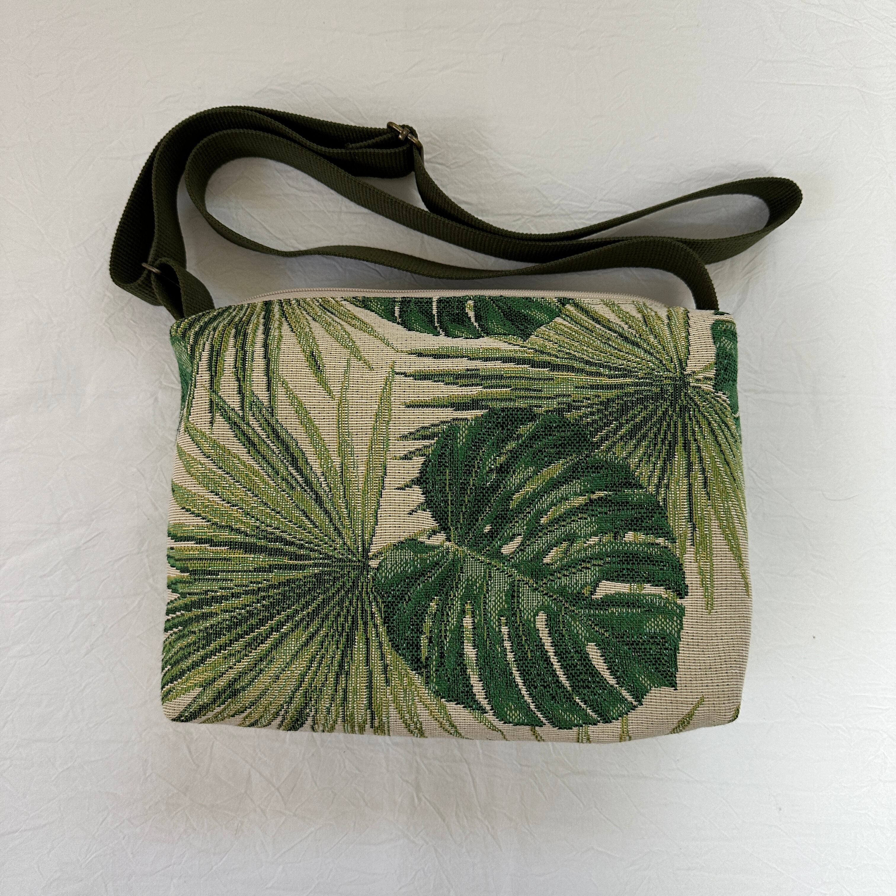 繊細なゴブラン織りハワイアン柄の厚手の布を使用した内ポケット付きハンドメイドのショルダーバッグです。